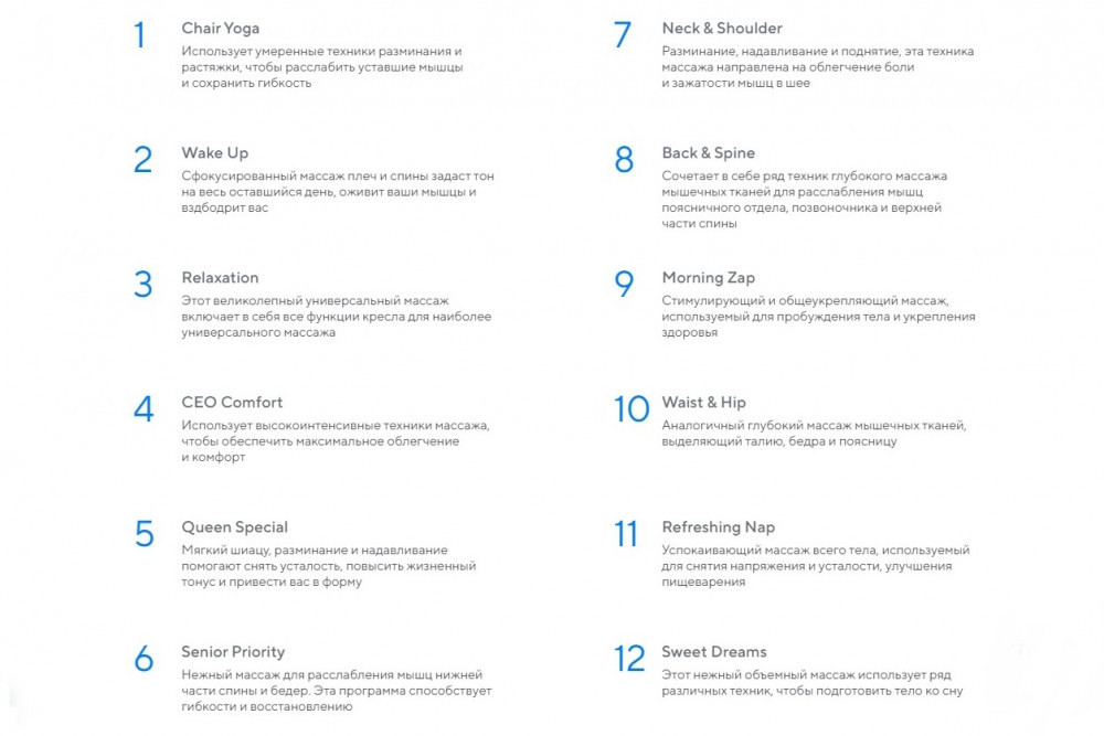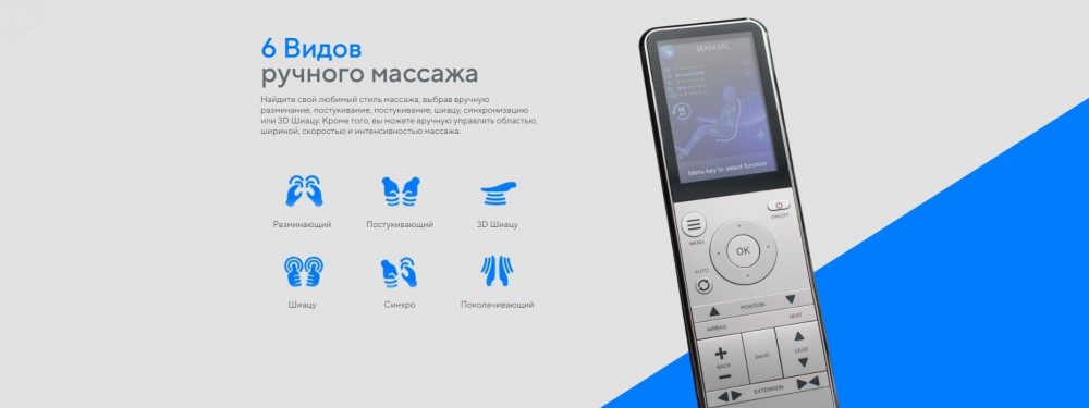 Перед началом массажа система сканирования быстро и автоматически измеряет все акупунктурные точки и размеры вашего тела для проведения индивидуального массажа.