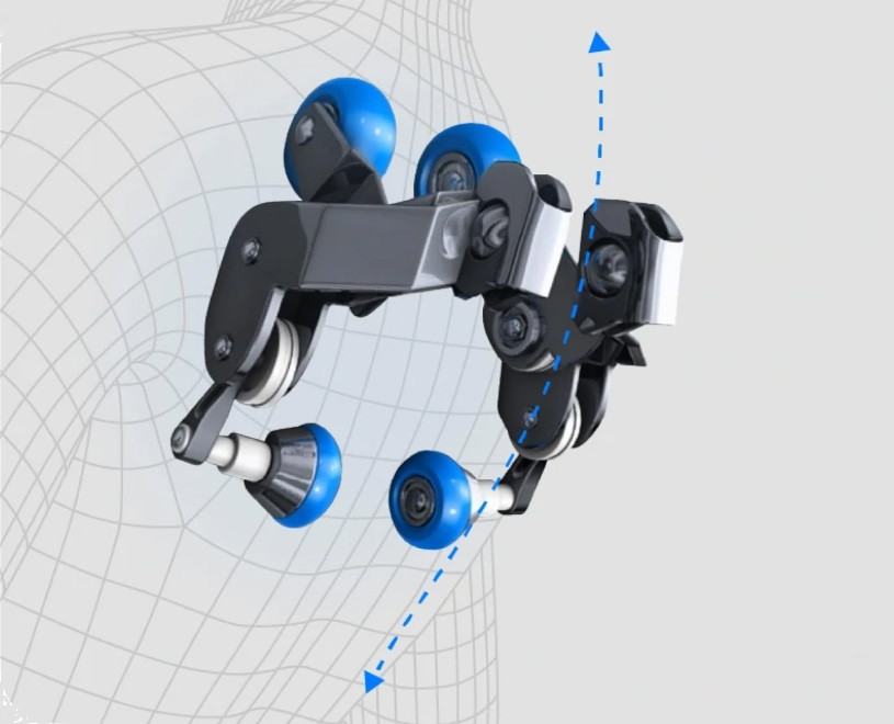 Структура SL- массажной каретки включает в себя беспрецедентную систему массажа для максимального комфорта. Соответствуя естественной кривизне человеческого тела и простираясь под сиденьем, массажные ролики разминают еще более эффективнее, чем когда-либо прежде.