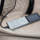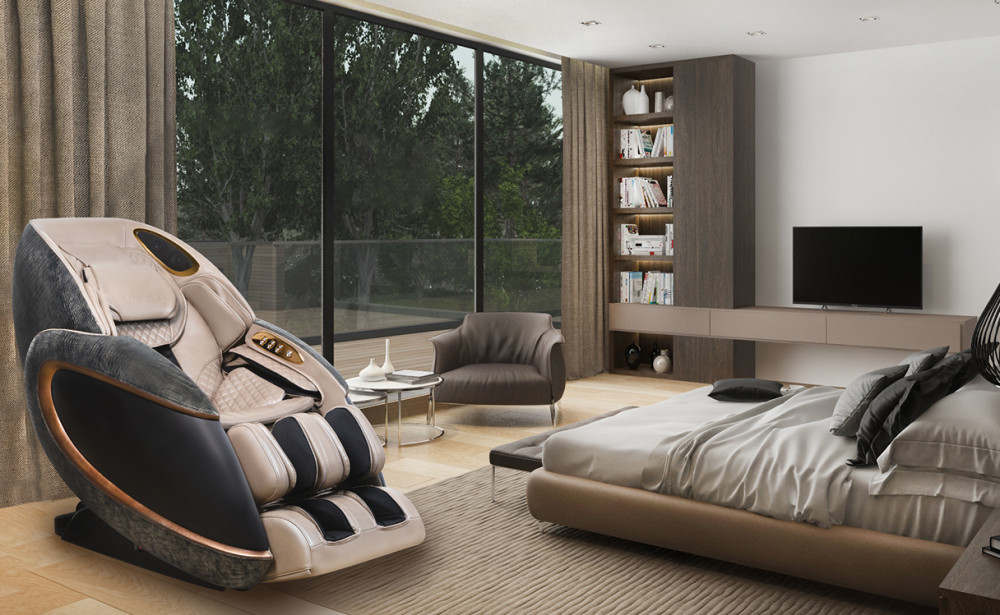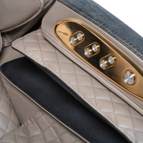 В кресле использована слайдер-система, за счет чего Вы экономите 80% используемого пространства. Кресло выдвигается на 28 см вперед, в то время как другим моделям нужно около 60 см расстояния от стены. 3D механизм способен выдвигаться на 8 см для того, чтобы проработать необходимые зоны во время массажа. Для максимального комфорта это массажное кресло оснащено стереосистемой последнего поколения.