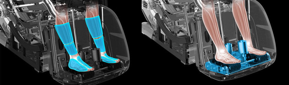 Подставка для ног автоматически регулируется в соответствии с ростом пользователя. Вы можете выбирать воздушно-компрессионный или роликовый массаж, а также массаж Гуаша для Ваших стоп.