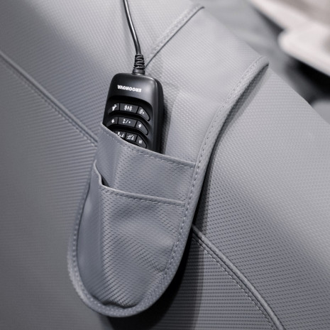 К креслу прилагается небольшой, интуитивно понятный пульт на пяти языках. Все кнопки удобно расположены и сгруппированы. Вы можете легко изменить настройки или переключить программу, а затем положить его в специальный чехол и полностью сосредоточиться на ощущениях.