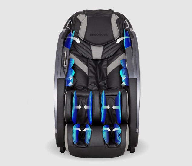 Воздушные подушки расположены в пяти различных областях кресла. Непревзойденный воздушно-компрессионный массаж с 30-ю воздушными ячейками и 5-ю уровнями интенсивности позволяет мышцам полностью расслабиться в тех частях тела, которые часто упускаются из вида в других массажных креслах.