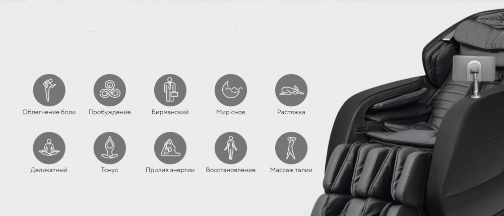 Каждая программа разработана в соответствии с массажными техниками и легко переключается с помощью пульта.