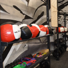 Такая зона, как правило, располагается вблизи зоны силовых тренажеров, порой объединяясь с ней. Зона свободных весов оснащается в гармонии с общей концепцией клуба. Обязательным является наличие в тренажерном зале зеркал.