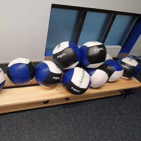 Для изготовления медболов используется прочный тентовый ПВХ-материал плотностью 650 г/куб.м. Диаметр мячей составляет 36 см.