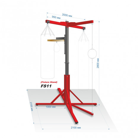 Мешки, груша Speed Bag, растяжка Double End не входят в комплект поставки напольной конструкции для боксерских мешков FS11 бренда FightTech.