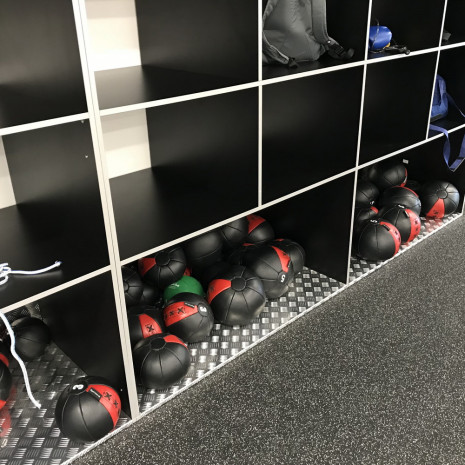 Такая зона, как правило, располагается вблизи зоны силовых тренажеров, порой объединяясь с ней. Зона свободных весов оснащается в гармонии с общей концепцией клуба. Обязательным является наличие в тренажерном зале зеркал.