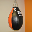 Боксерская груша-шар изготовлена из прочной натуральной кожи толщиной 2,2 мм, которая с внутренней стороны армирована ПВХ тентом плотностью 630 г/кв.м. Прочная на разрыв, стойкая к истиранию и многократным изгибам оболочка наполнена мелким трикотажным лоскутом и резиновой крошкой. Такое наполнение обеспечивает необходимую плотность ударной поверхности для эффективной отработки ударов. Набивочный материал, поставляемый партиями, может различаться по объемному весу, за счет чего погрешность веса боксерской груши может достигать 5 кг.