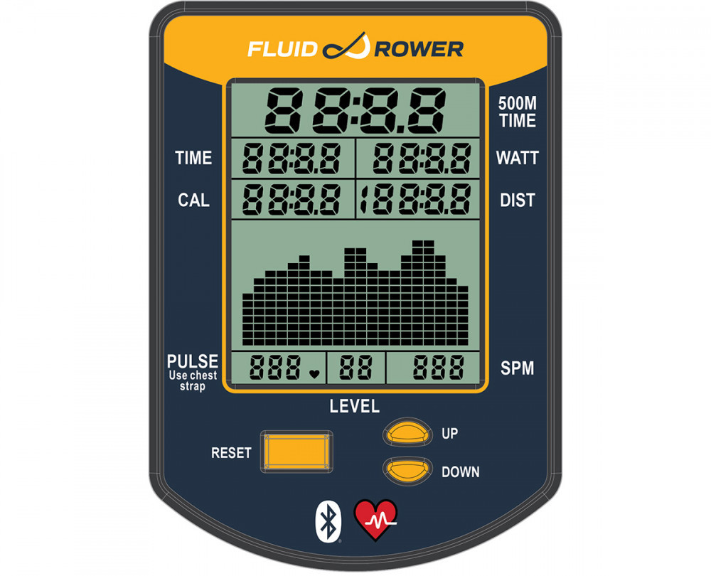 Mega PRO XL разработан с применением самых современных технологий и обладает максимально расширенным функционалом и уникальными инновациями в данной сфере. Bluetooth монитор подключается к регулятору уровня нагрузки, расположенному на резервуаре, что позволяет ему автоматически подстраиваться под выбранные пользователем параметры нагрузки и показывать наиболее точные информационные данные. Благодаря этому Вы можете пользоваться смартфоном, планшетом или любым другим гаджетом, участвуя в реальных, а также виртуальных соревнованиях по водной гребле индор.