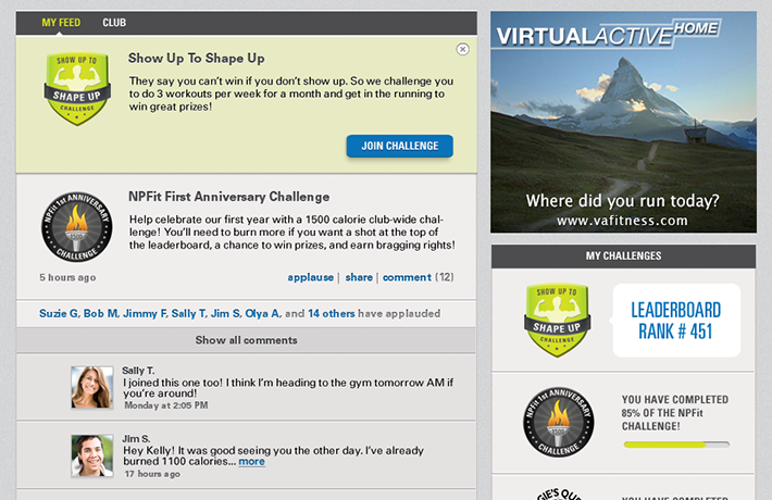 Общение С платформой NetpulseOne Ваши клиенты будут соревноваться, взаимодействовать, аплодировать друг другу и вместе радоваться своим достижениями, превращая клуб в свой спортивный центр общения.