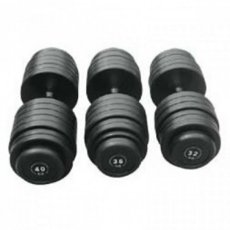 Набор профессиональных обрезиненных гантелей включает 10 пар гантелей весом 27,5 - 50 кг с шагом веса 2,5 кг.