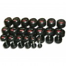 Набор имеет в своем составе 10 пар гантелей с весом в 2,5-25 кг с шагом в 2,5 кг.
