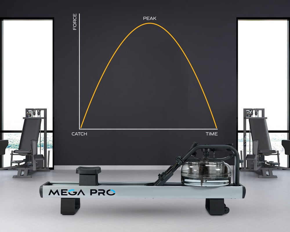 График распределения нагрузки является уникальной особенностью Bluetooth монитора Fluid. Этот график показывает ваш гребок в реальном времени. Вы можете использовать эту информацию для совершенствования вашей техники гребли. Чем лучше ваша техника, тем больше вы получаете от тренировки! На самом деле, идеальный гребок состоит из шести этапов, формирующих одно плавное, повторяющееся циклическое движение.