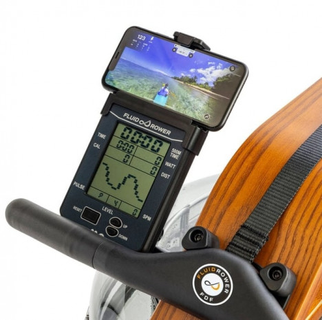 Bluetooth монитор Fluid контролирует все необходимые параметры вашей тренировки - нагрузку в ваттах, калории, дистанция и количество гребков в минуту. Монитор автоматически отображает уровень сопротивления, который вы установили с помощью регулятора на гребном тренажере. Вы также можете подключиться к фитнес приложениям, таким как Fluid Connect, Regatta, Asensei, EXR и Kinomap, используя Bluetooth.