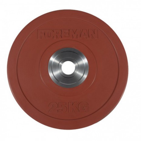 Диск Foreman весом 25 кг оснащен бампером и внешним резиновым слоем покрытия, в основе лежит стальная втулка. Диск применяется на грифах в кроссфите и функциональном тренинге. Резиновое покрытие и бампер делает падение диска на пол безопасным в экстренном случае, без повреждения покрытия.