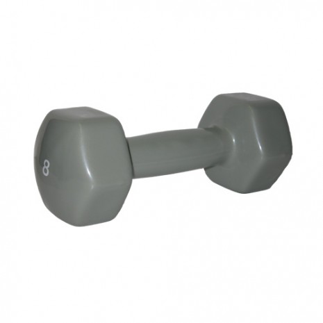 Закругленные по краям пара гантелей по 3,6 кг представлены в тонкой виниловой гладкой оболочке. Этот тип аксессуара активно применяется не только для аэробных нагрузок, но и для силовых.