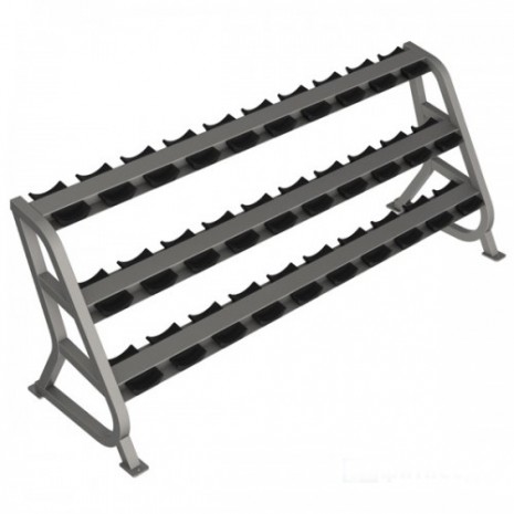 Стальная подставка в три яруса Foreman FR-813 рассчитана на 12 пар гантелей разного веса. Внешним покрытием служит порошковое надежное напыление, для каждой гантели предусмотрена отдельная ячейка.