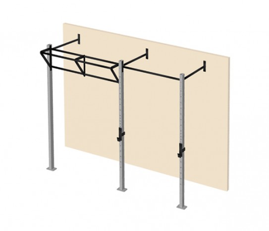 Компактная конструкция кроссфит-станции надежно крепится к стене, что позволяет проводить тренировки любой интенсивности.