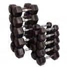 Кроме того, Body Solid предлагает наборы шестиугольных гантелей. Гантели имеют прочную прорезиненную оболочку, а хромированные рукоятки снабжены противоскользящей насечкой. Все гантели Body Solid имеют современный дизайн и привлекательный внешний вид. Эргономичные рукоятки гантелей обеспечивают удобный хват, а небольшой шаг позволяет правильно и оптимально подобрать нагрузку. Гантели Body Solid идеально подойдут как для интенсивного использования в профессиональных тренажерных залах, так и в домашних условиях.