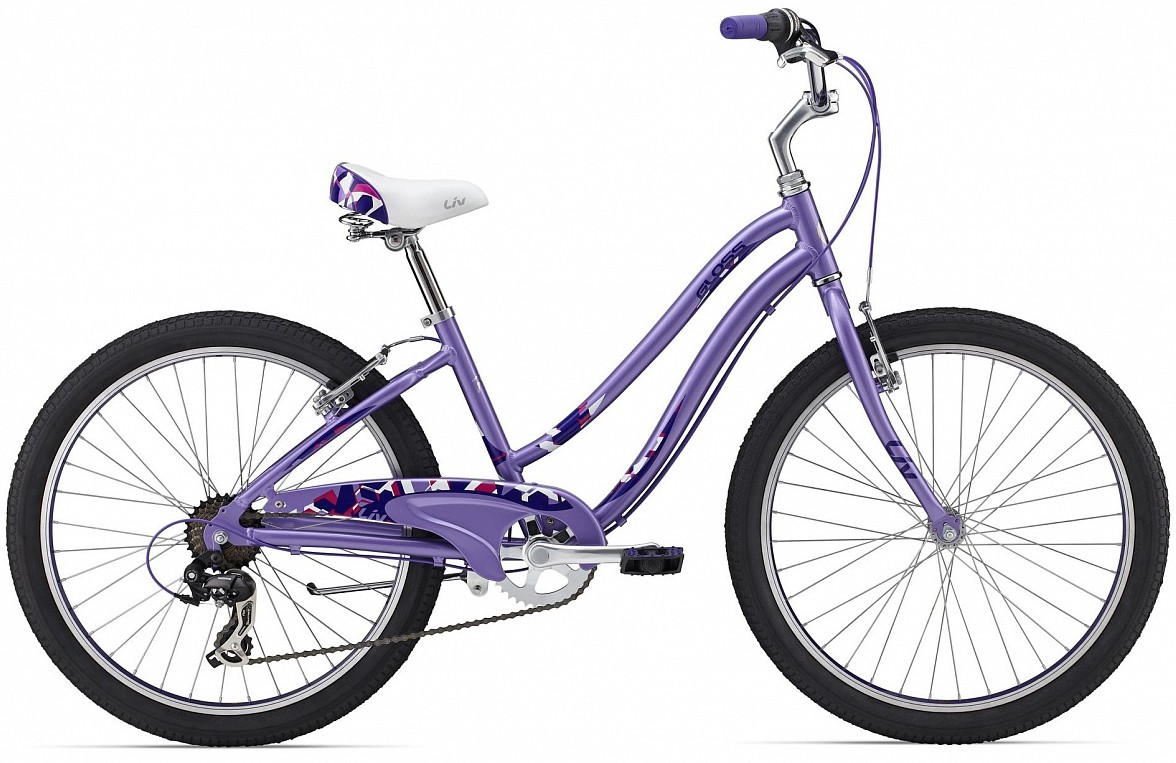 Велосипед Gloss 24 бренда Giant – городской велосипед для девочки-подростка. Оснащенный 24-дюймовыми колесами, он отлично подойдет для езды по ровным городским дорогам или для катания в парке. Гладкая езда и стиль – все, что нужно юной девушке, и на этом велосипеде она будет королевой, а сопровождать ее будет удовольствие и показной лоск.