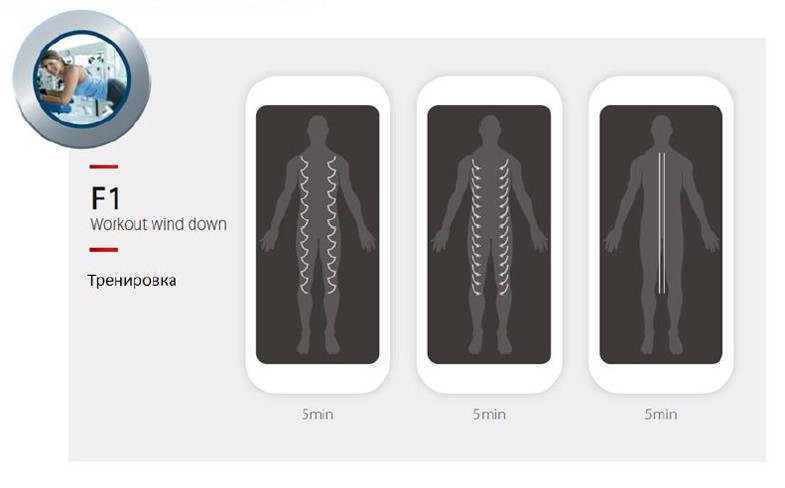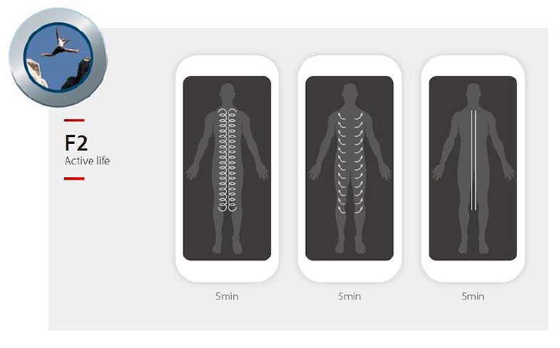 Пользователь самостоятельно может настраивать давление на различные участки тела и воздействовать непрерывным давлением воды на те части тела, где это необходимо, например, на плечи, торс, талию и нижнюю часть тела, либо на все тело полностью.