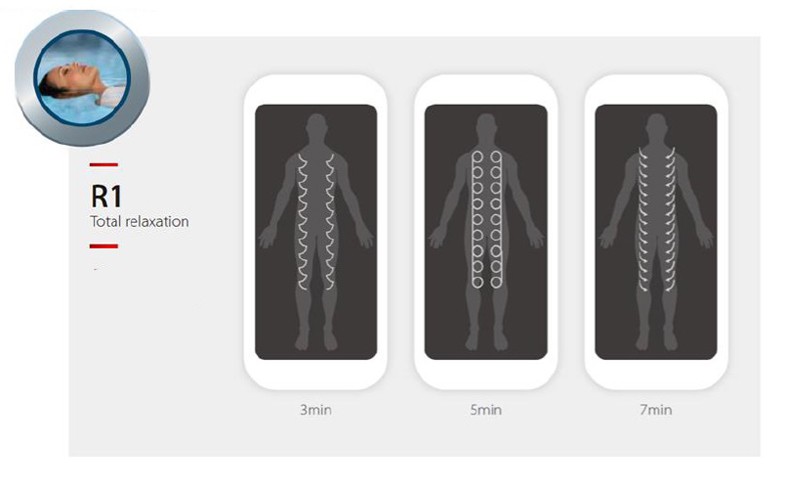 Режим лечебного воздействия зависит от заболевания и состояния пользователя, и в зависимости от этого медицинский персонал подбирает методику лечения с воздействием на позвоночник, околопозвоночные мышцы и связки. Бесконтактная гидромассажная ванна имеет 20 запрограммированных режимов.