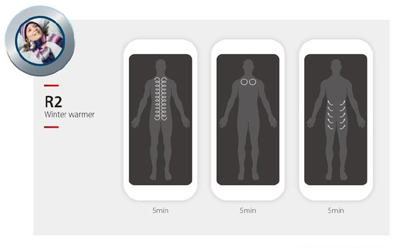 Максимальная температура воды составляет 37°С. Шаг изменения температуры составляет 1°С. Начальная температура воды является комнатной. При массаже с теплой водой расслабляются мышцы и снимается напряжение, а также улучшается кровообращение.