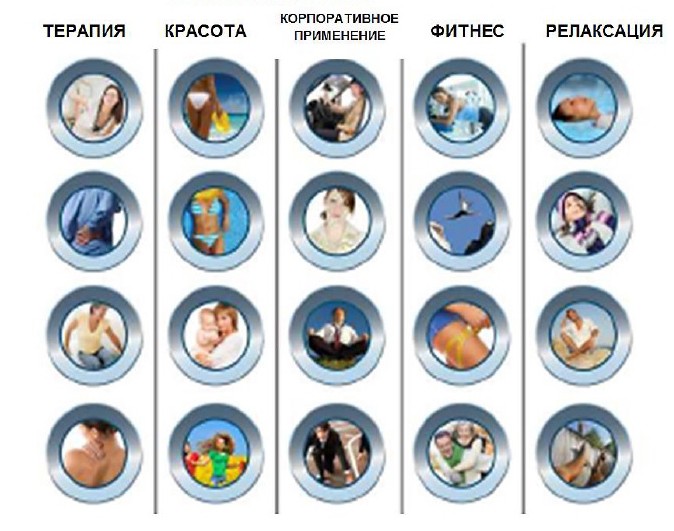 Бесконтактная гидромассажная ванна разработана для стимулирования тела гидровибрацией. Процедуры с ней будут полезны пациентам с миалгией и синдромом фибромиалгии, а также с заболеваниями позвоночника, грыжами и протрузиями межпозвонковых дисков, синдром хронической усталости, симптомами вегетативной дистонии, мышечного утомления (в том числе и при спортивных тренировках) и пр.