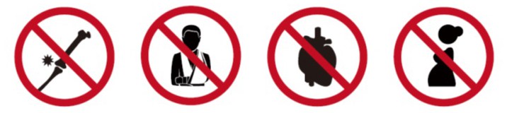 При использовании гидромассажной бесконтактной ванны имеются противопоказания, которые включают режим ограничения активности, болезни сердца, заболевания органов брюшной полости (воспаление или кровотечение, например, аппендицит или язва желудка), лихорадочные, инфекционные или островоспалительные заболевания, истощение организма, острый психоз, эпилепсия, высокое кровяное давление, гнойные или грибковые заболевания кожи, остеопороз, наличие недавнего перелома. Кроме того, гидромассажную бесконтактную ванну нельзя использовать детям в период роста, беременным женщинам из-за возможности негативного влияния на плод, а также лицам, имеющим злокачественные опухоли.