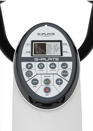 Вибротренажер G-Plate G 2.0 оснащен современным компьютером, который отличается простотой настроек и интуитивно понятным управлением. С его помощью не только профессионалы, но и новички смогут составить для себя комплексную тренировочную программу любого уровня сложности. Кроме того, консоль тренажера имеет встроенные программы, подробности которых детально отражаются на ее дисплее. На экране визуально показывается, какое положение тела следует принять, какие необходимы аксессуары, указаны амплитуда и частота вибрации, длительность программы и пр., а также то, на какие группы мышц направлена тренировка. Благодаря эргономичным замкнутым поручням пользователю обеспечивается комфорт в любом положении, увеличивая при этом количество вариаций возможных упражнений. Поручни имеют антискользящее покрытие, которое не теряет своих качеств даже в результате долговременной эксплуатации. Благодаря этому обеспечивается полная безопасность тренировок.