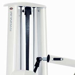 В тренажере вместо троса используется полимерная лента, которая оснащена 26 кевларовыми тросиками. Рабочая нагрузка ленты не превышает 2500кг. Стоит также отметить, что на ленту грузового стека компания предоставляет пожизненную гарантию. К тому же, с помощью данной детали обеспечивается плавность и комфортная работа всей конструкции тренажера.