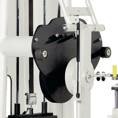 • В тренажере вместо троса используется полимерная лента, которая оснащена 26 кевларовыми тросиками. Рабочая нагрузка ленты не превышает 2500кг. Стоит также отметить, что на ленту грузового стека компания предоставляет пожизненную гарантию. К тому же, с помощью данной детали обеспечивается плавность и комфортная работа всей конструкции тренажера.