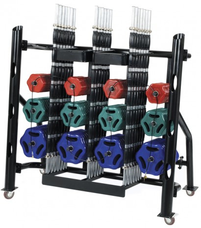 40 шт 5 кг дисков, 40 шт 2,5 кг дисков, 40 шт 1.25 кг дисков + 20 грифов + 20 пар замков RSLC Collars + 1 стойка GPS-R на 4 секции