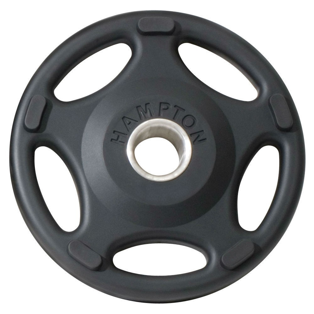 Диски Hampton Olympic Grip Urethane с эргономично изогнутыми захватами делают возможным подъем с пола и или со стойки. Уникальный дизайн облегчает загрузку и разгрузку дисков, позволяет избежать защемления пальцев.