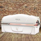 Модель имеет горизонтальную конструкция. Форма нижней панели позволяет пользователям чувствовать себя комфортно во время сеанса, а для поднятия/опускания верхней панели не нужно прикладывать усилий. В аппарате установлено 39 коллагеновых ламп, питание которых обеспечивается от обычной электросети (220 Вт). Красный свет ламп мягко воздействует на кожу всего тела, акцентируясь на шее, руках, лице.
