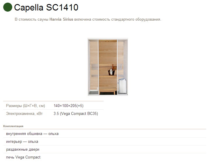 Линейка Capella фирмы Harvia представляет сауны для ванных комнат, которые станут идеальным решением для небольших помещений. Это совершенно новый ряд саун высокого класса. Они специально разрабатывались для небольшого пространства ванных комнат, при этом учитывалась влажность, присущая таким помещениям. Для элементов, из которых изготовлены стены, используются не только водоустойчивые материалы, но и стойкие к действию высоких температур и влажности. Водонепроницаемая боковая стенка сауны может использоваться, как душевая стена.