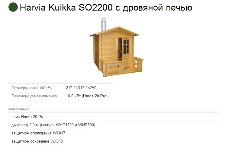 Комплект поставки отдельно стоящих саун Harvia включает в себя все необходимые материалы – кровельные материалы, пиломатериалы, крепеж и каменка на выбор – электрическая или дровяная со стальным дымоходом, поэтому при желании Вы сможете самостоятельно собрать свою сауну.