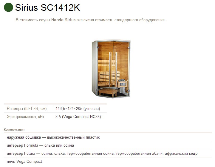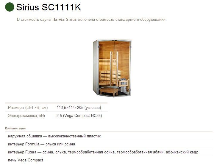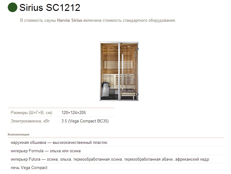 Линейка Sirius фирмы Harvia представляет сауны для ванных комнат, которые станут идеальным решением для небольших помещений. Это совершенно новый ряд саун высокого класса. Они специально разрабатывались для небольшого пространства ванных комнат, при этом учитывалась влажность, присущая таким помещениям. Для элементов, из которых изготовлены стены, используются не только водоустойчивые материалы, но и стойкие к действию высоких температур и влажности. Водонепроницаемая боковая стенка сауны может использоваться, как душевая стена.