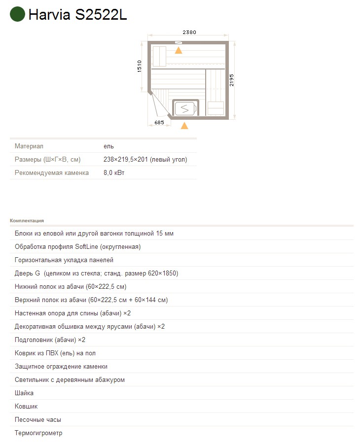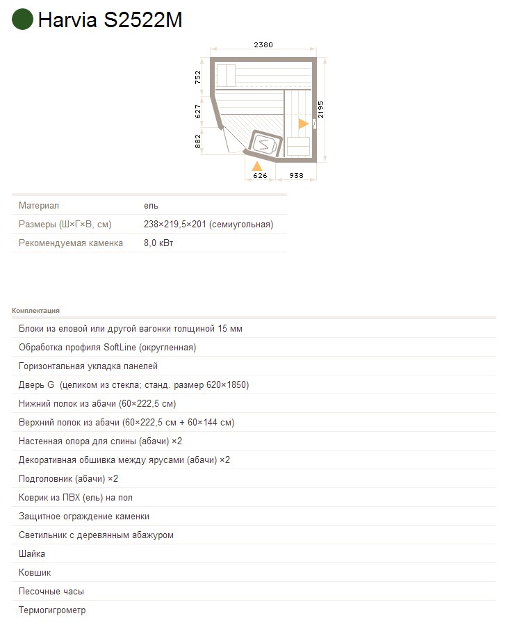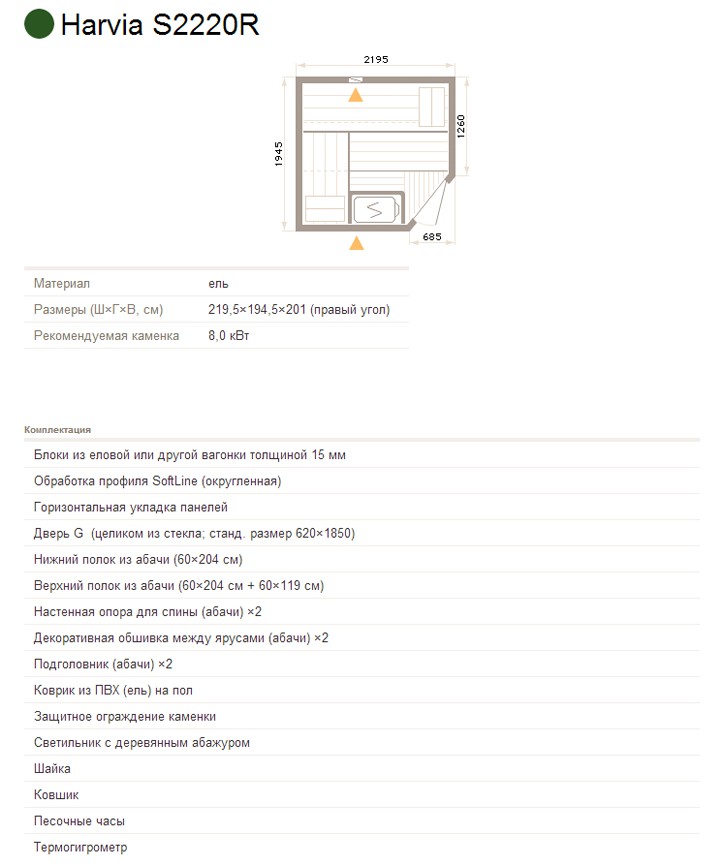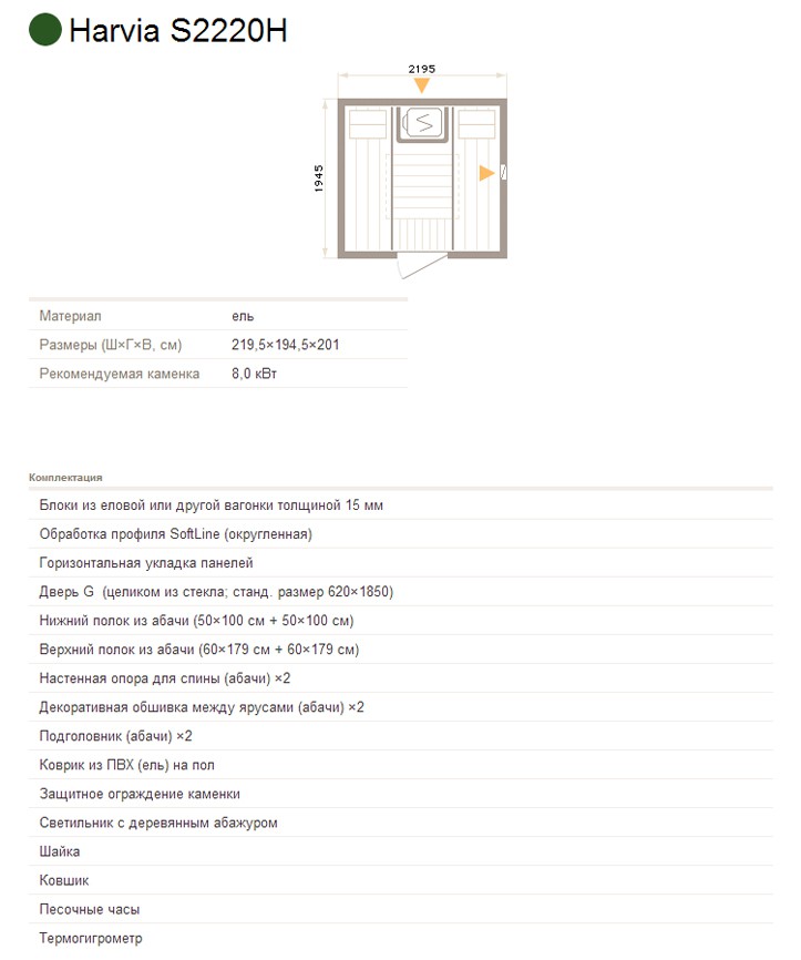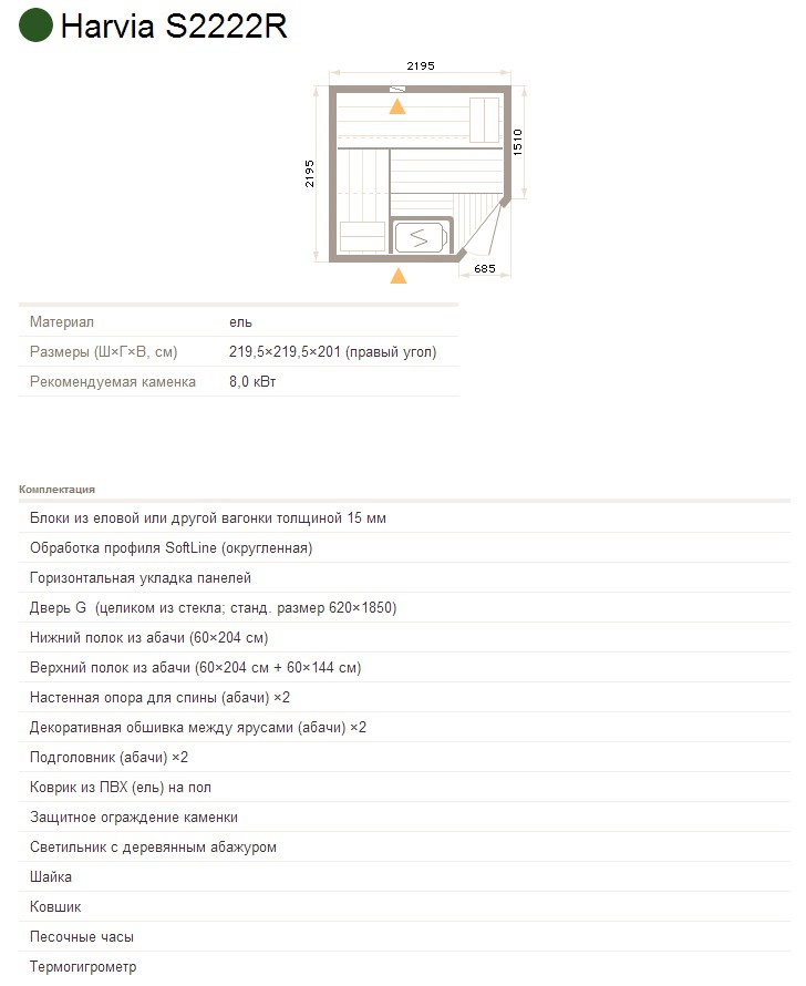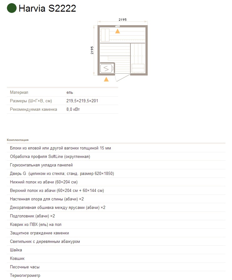 Для изготовления полков, подголовников и спинок стандартной комплектации используется приятная, легкая в уходе древесина абачи. При разработке всех элементов интерьера учтены все эргономические требования и традиции настоящей финской сауны. Грани всех скамей имеют элегантное закругление, а для отделки переднего края используется великолепный профиль из массива. Благодаря высококачественному дизайну и мягкому освещению Вам гарантировано истинное наслаждение в саунах Variant Line фирмы Harvia.