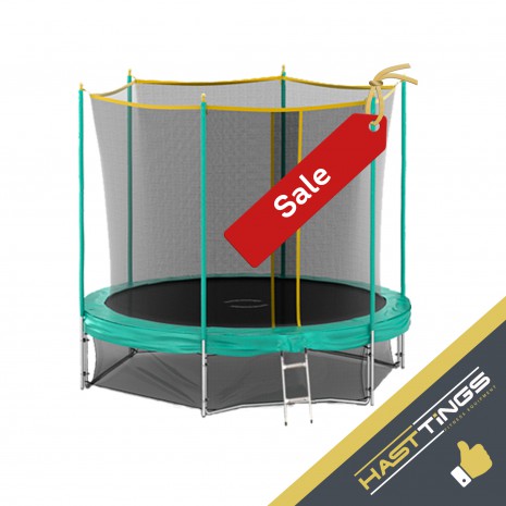 Одна из самых известных моделей компании Hasttings – батут 8ft. С 2012 года в комплект входит дополнительная нижняя защитная сетка, исключающая риск травмообразования под прыжковым полотном. Под ним дети могут спрятаться, организовать дополнительное игровое пространство (например, домик) и получить травму, когда другой участник игры прыгает на батуте. Данная модель батута целиком исключает такую опасность для ребенка.