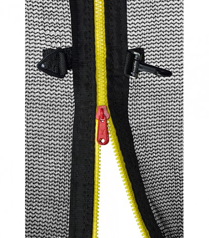 Защитная сеть соединяется с прыжковым полотном при помощи прямого крепления, это обеспечивает абсолютную защиту от попадания на пружины при падении. Плетение полотна очень плотное, поэтому оно также гарантирует безопасность и защиту от травм у детей.