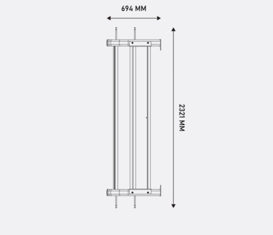Размеры в рабочем состоянии (Д × Ш × В). 232,1 × 69,4 × 156,7 см.