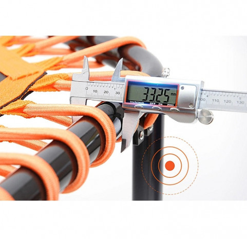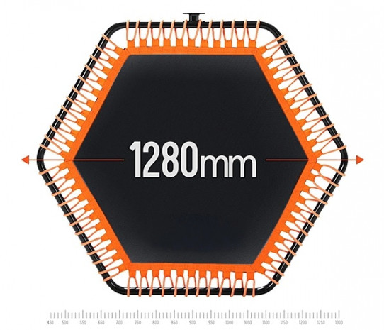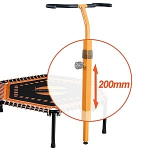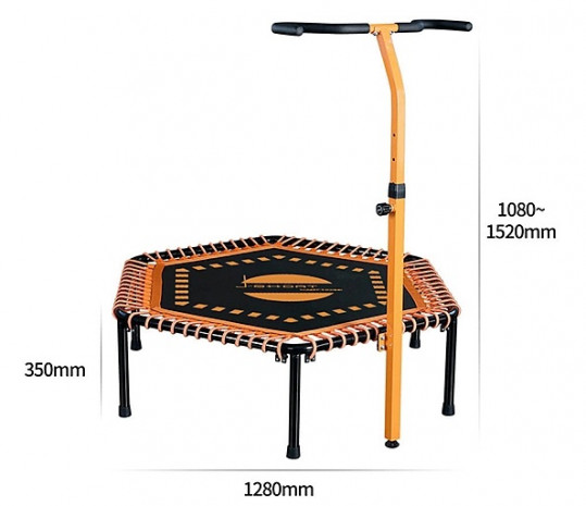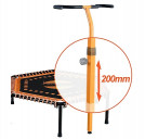 В батуте предусмотрен механизм регулировки ручки по высоте, что позволяет отрегулировать ее под свой рост. Регулировка позволяет выбрать один из 7-ми уровней с шагом в 7,5 см, с учетом, что нижняя точка расположена на высоте 108 см, а верхняя на уровне 153 см.