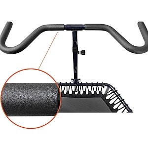 Регулировка по высоте ручки. Батут снабжен механизмом регулировки в вертикальной плоскости, который обеспечивает 7 положений ручки по высоте с шагом 7,5 см, начиная с нижней точки на уровне 108 см и заканчивая верхней на высоте 153 см. Это позволяет выбрать правильную высоту ручки с учетом роста пользователя.