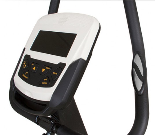 Сочетание деталей цвета капучино и классических черных элементов позволит велотренажеру легко вписаться в любой интерьер. Скромная цена не мешает тренажеру обладать 24 тренировочными программами, каждая из которых имеет 24 уровня сложности. Также имеется пользовательский режим, позволяющий сохранять 4 профиля. Есть возможность индивидуальной регулировки каждой программы. Ввод личных данных позволит подобрать правильный уровень нагрузки в зависимости от физической подготовки, причем этот выбор происходит автоматически. Удобный и цветной дисплей подарит возможность постоянного контроля за всеми показателями тренировки, а для более точного измерения пульса тренажер может быть совместим с беспроводным кардиопоясом. Для обеспечения большего комфорта тренажер снабжен регуляторами руля, компенсаторами пола и роликами для транспортировки, также сиденье может быть отрегулировано в горизонтальной и вертикальной плоскости.