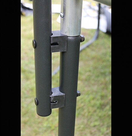Опорные стойки. Для опорных стоек используются трубы диаметром 32 мм с толщиной стенки 1,2 мм. За счет увеличенного расстояния между сеткой и стойками уменьшается вероятность получения удара.