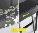 Безопасность. Крепление защитной сетки к прыжковому полотну осуществляется с помощью инновационного механизма MaxLock, которое полностью гарантирует безопасность занятий на батуте. Благодаря такому креплению удалось добиться максимальной защиты от попадания в пружинный блок при падении.