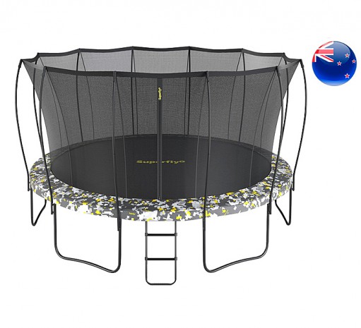 Предел прочности. Батут Superfly X 15ft бренда Hasttings рассчитан на пользователей весом до 220 кг. При соблюдении этого условия обеспечивается безопасность занятий на тренажере.