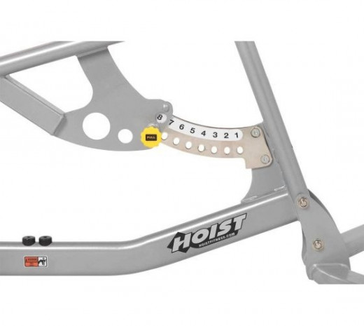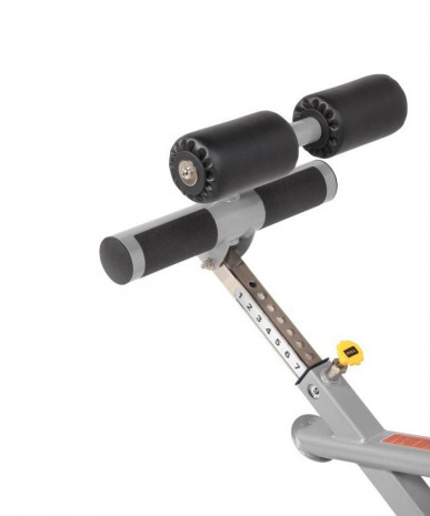 Регулируется в восьми положениях от полноценного римского стула (угол 0°) до гиперэкстензии с наклоном в 35°, что позволяет расширить комплекс выполняемых упражнений.