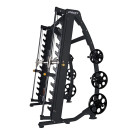 Тренажер оснащен 10 встроенными накопителями для дисков с суммарной емкостью хранения до 612 кг. Это превращает зону Смита в полноценную силовую станцию, где всё необходимое всегда под рукой.